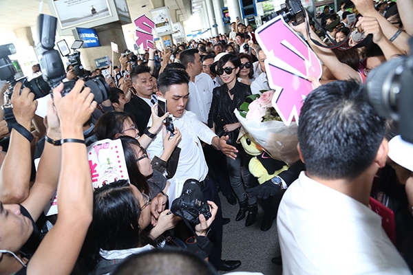 Sự xuất hiện của nữ diễn viên hàng đầu Đại Lục đã làm bầu không khí tại sân bay “nóng” lên hẳn.
