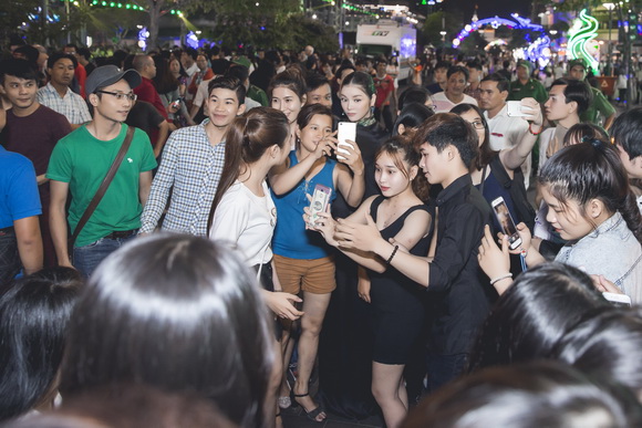 Lý Nhã Kỳ được khán giả vây kín trên phố đi bộ Nguyễn Huệ