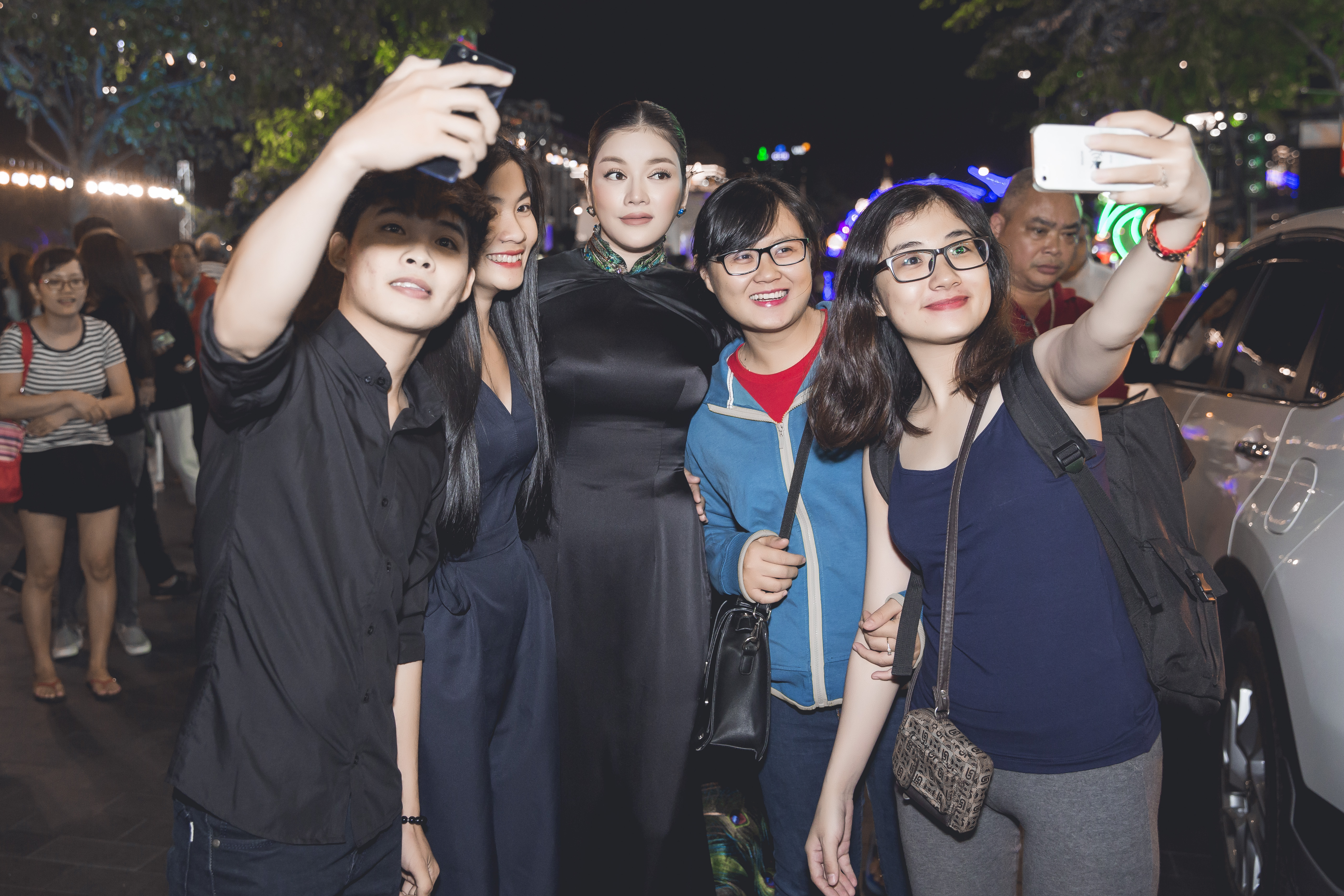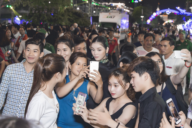 Hàng trăm fans hâm mộ đã quây kín Lý Nhã Kỳ khi nhận ra cô tại đêm khai mạc Lễ hội áo dài TP. HCM 2017.