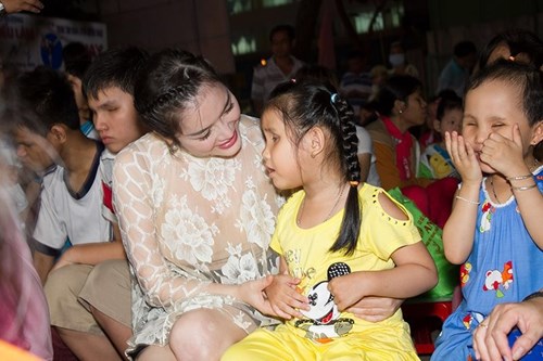 Lý Nhã Kỳ chân trần, mang Trung thu đến trẻ em TP.Mỹ Tho