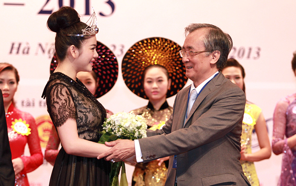 Nàng kiều nữ diện bộ đầm voan xẻ sâu vòng 1, làm nổi bật vẻ đẹp kiêu sa khi đến dự buổi lễ trao danh hiệu.